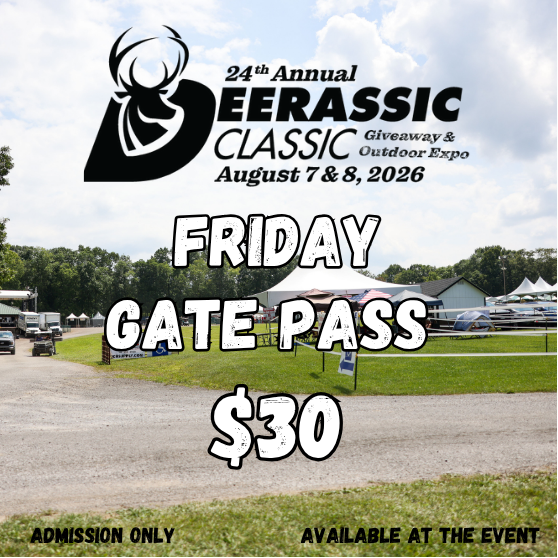 This pass allows 1 person (18 years or older) to enter the 2026 Deerassic Classic on Friday, August 7. Gates open at 1 p.m. This does not include admission on Saturday, August 8.